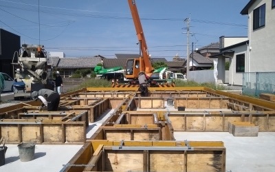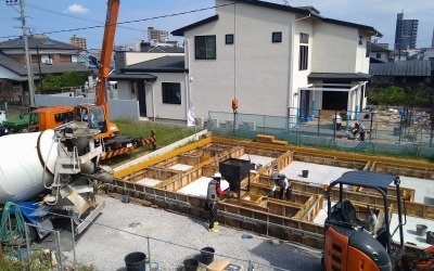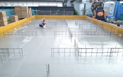 JIOによるお墨付きをいただいた後は、 いよいよ生コンクリートの打設です。