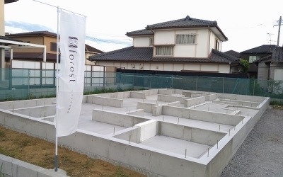 現場「UK.Garden」は基礎工事完了後、土台敷きの工程へと移りました。