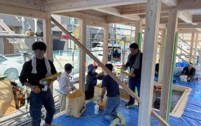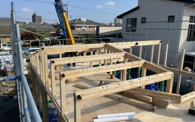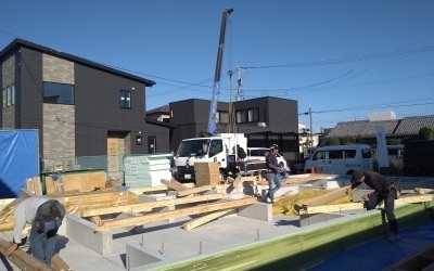 上棟後 内部、外部ともに着々と工事が進む 現場「UK.Garden」