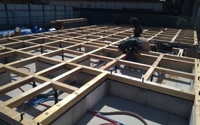 ここでのひとつのポイントは土台敷き時に先行して床下をきれいに掃除しておくことです!