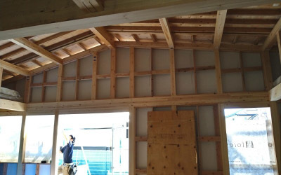 第三者機関JIOによる構造検査に合格した 「UK.Garden」は、 内部の壁および天井仕上げ施工の工程へと移りました。