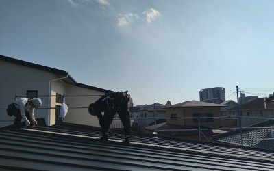 また上棟後最初に行う重要な雨仕舞工事、ガルバリウム鋼板仕上げの屋根工事も行われました☀