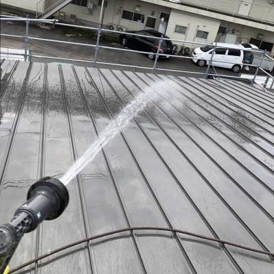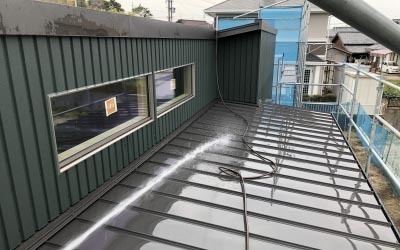 まずは屋根からスタート。 屋根は足場が解体されると簡単には上がれなくなる為、入念に。