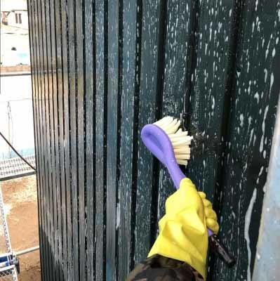 先日は足場解体前の外壁洗浄を行いました。 forestではスタッフ自らの手で洗浄を実施します。