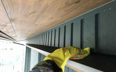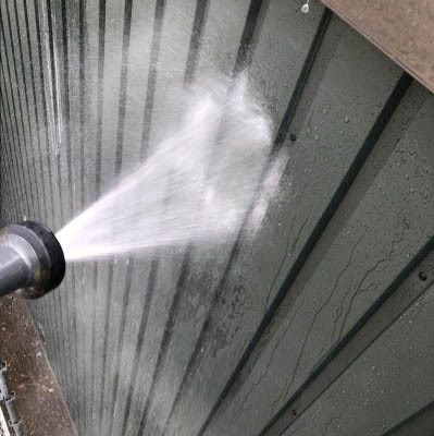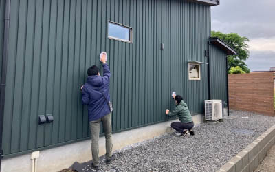 外部ガルバ壁を拭き上げながら汚れている個所や傷などがないかをcheck👀