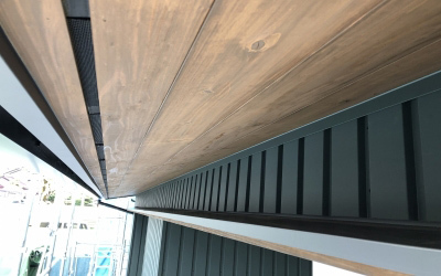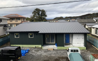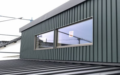 今回採用したのは次世代ガルバリウム合板の角波型。 耐久性だけでなく耐色・耐汚性にも優れています。