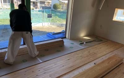 唯一のデメリットといえば施工の難しさ… 大工さんが仮当てをしては調整を繰り替えすので 1日に張れる枚数は数えられる程度。