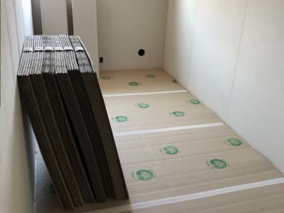 床張りの1枚目は1番慎重に。 些細なズレでも張り進めると誤差がどんどん大きくなる為、寸分の狂いも許されないのです。
