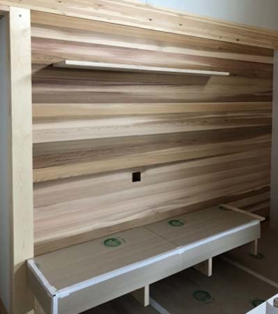 背面にはウェスタンレッドシダーを張りアクセント与えます。 仕上がりが楽しみです。