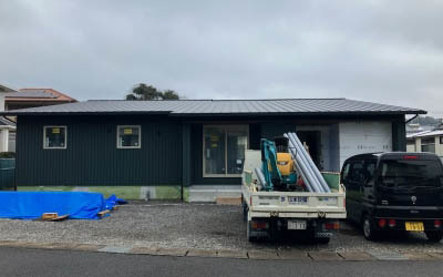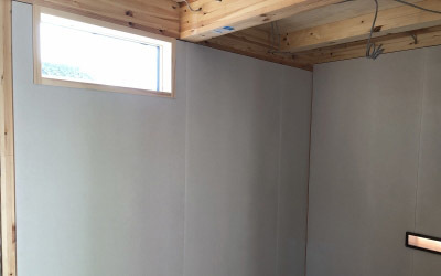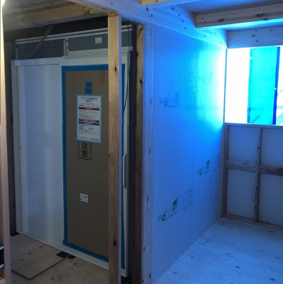 内部では間仕切壁や断熱材が入り、先日はユニットバスを設置。 上棟時は骨組みだった建物も徐々に家らしさが増してきました。