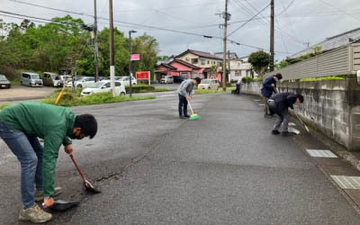 磨きの締めくくり。 工事期間中お世話になった近隣の皆さまに感謝の気持ちを込め、 毎日使用させていただいた道路や側溝、路肩の清掃をおこないました。