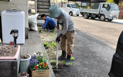 全体的なバランスをみながら選別された植栽を配置していきます。