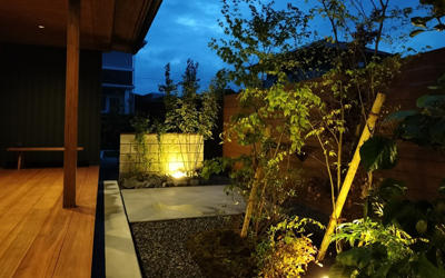 照明で柔らかく映し出された雰囲気のある佇まい。