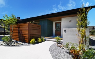 人気の高いオリーブ色は外壁との相性も抜群に良いです。