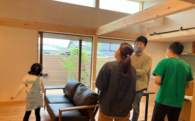 昼食の後は、お施主様ご夫妻に建物内部をご案内。