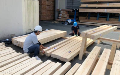番付を終えた木材が、クレーンオペレーターと職人さんの阿吽の呼吸であらかじめ決められた位置に配置されていきます。