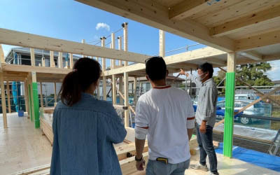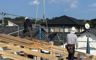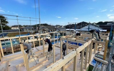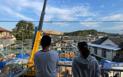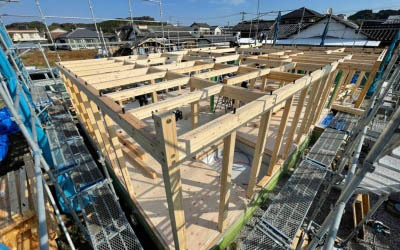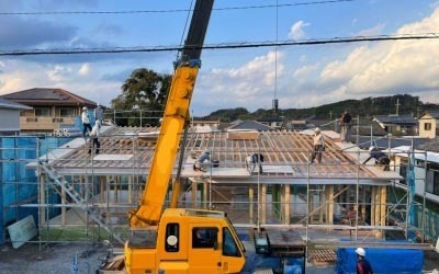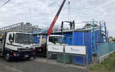 基礎工事を終えたProject 四季のそらは番付・土台敷きを終え、建て方を迎えました。