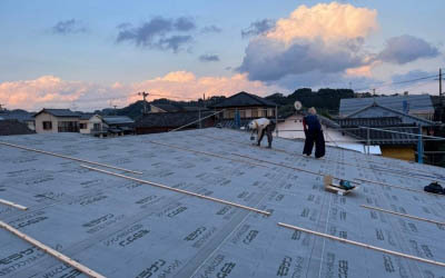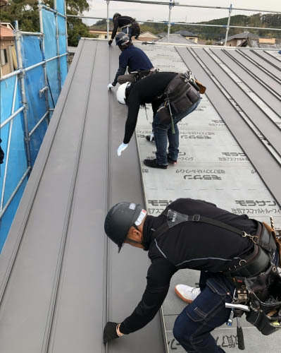 続いては建物を雨などから守る為の屋根葺き作業です。