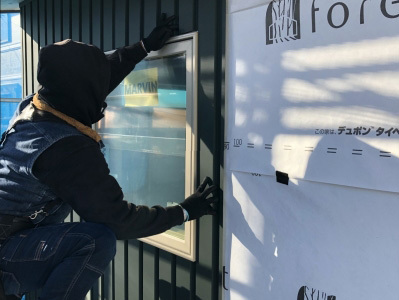 建物形状や窓などにピッタリ納まるように1枚1枚手作業で加工。