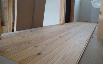 現場「LIBRARY HOUSE」では床材に浮造り加工されている杉の無垢材を使用しました。