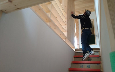 その後検査は内部へ移ります。 間取り、天井高さ、換気設備、火災報知器、階段寸法・・・ 事細かに行われた完了検査は約40分ほど。