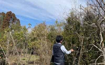 外構工事が進む現場、外構の仕上げに欠かせない樹木を選びに山へ💨