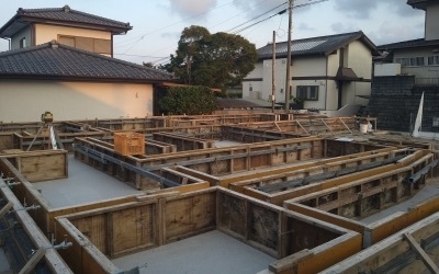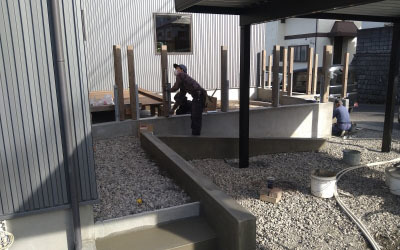 底盤部の後は、再度型枠を設置し立上り部分のコンクリート打設(2回目)