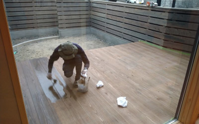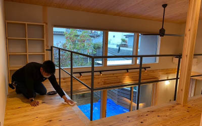 無垢材の床の心地良い肌触り、優しく丁寧に磨きます。