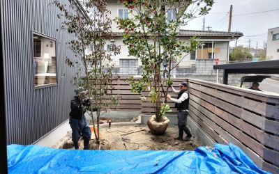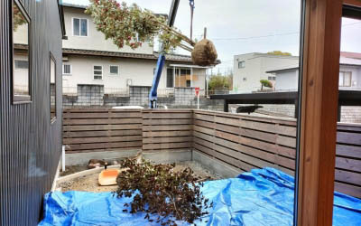 「LIBRARY HOUSE」は今後、内部工事と並行して外構工事も進めてまいります。 現場は快調です!