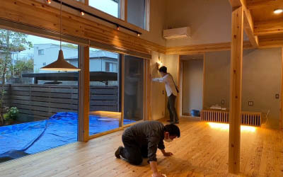 設備機器の試運転、造作家具の仕上がりも確認。 フォレストオリジナルが詰まったお家。私たちがつくり上げたものを自らの目で見て触れて、 磨き上げてオーナー様の元に送り出す。