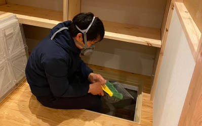 現場の指揮をとるSさん、床下に潜ること数時間...掃除機をかけて完了です。