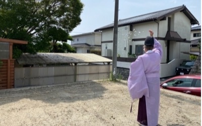 土地の神様に玉串を奉奠し、工事の無事を祈願します。