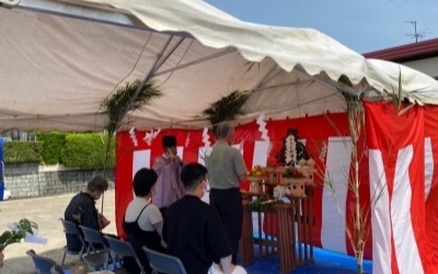 敷地が綺麗に整ったところで、地鎮祭を執り行います。