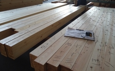 見える方向にもこだわった柱や梁がイメージの場所に据えられていきます。