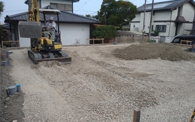 地鎮祭を終えた現場では、造成後の先行工事が進みます。
