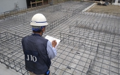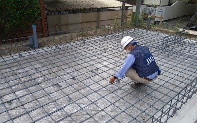基礎鉄筋組み後は、第三者機関JIOによる配筋検査が行われました。