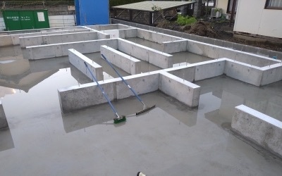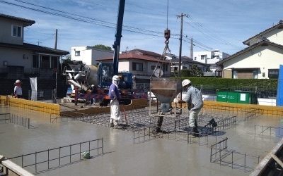 検査合格後はさっそく底盤部分のコンクリート打設です。