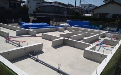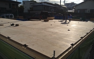 現場「LIBRARY HOUSE」は上棟前の最終工程である土台敷きが完了しております。