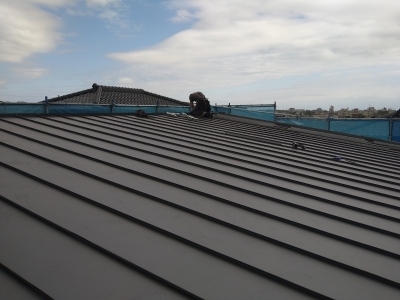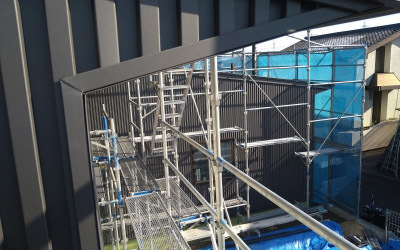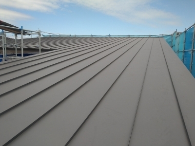 屋根材はガルバリウム鋼板。 銀黒色で艶消し仕上げです。