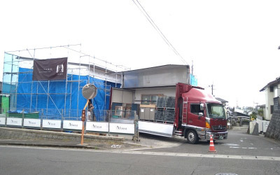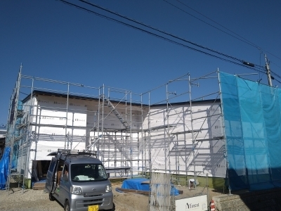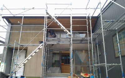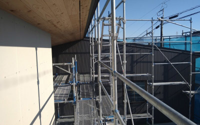 いよいよ現場「LIBRARY HOUSE」は上棟へむけて仮設足場を設置するのみとなりました。