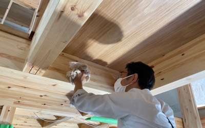 見極められた構造材をさらに美しくするべく、磨きをかけて行きます。