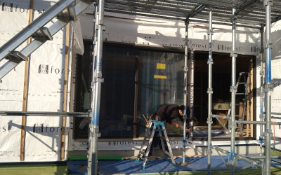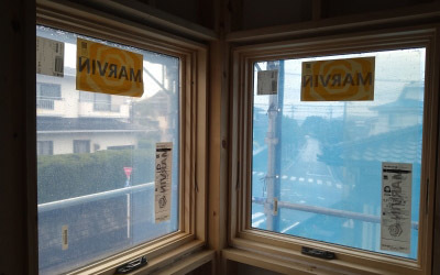 搬入された25枚のサッシが決められた箇所に的確に納められていきます。