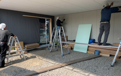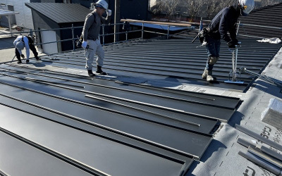 先日より続いた外壁のガルバリウム鋼板張りも完了。