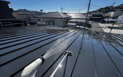 この『磨き』作業を迎えると、工事の終盤を実感します。 これまでの工程を振り返りつつ、外壁の波ひとつひとつを 丁寧に磨いていきます。