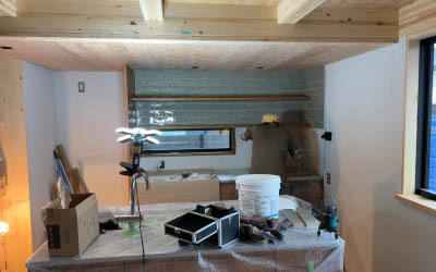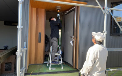 内部ではいよいよ照明器具取付や造作の仕上げ工事が順調に進みます。