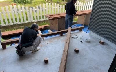 いよいよ現場に大工さんの登場です! 土台敷きを行います。