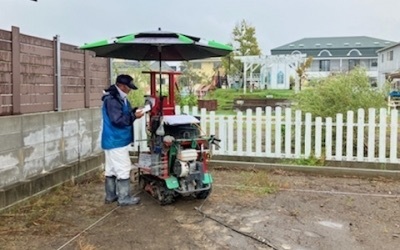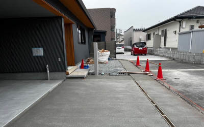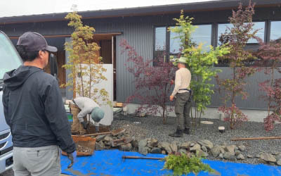 土間コンクリートが完成し、外構工事の要である植栽工事へ🌲
