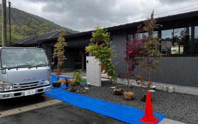 建物内部からの見え方や木の配置・角度などバランスを熟考します。 その一つ一つの積み重ねが建物と融合し、ソトとナカをつなぐ特別な空間へと変化させます。