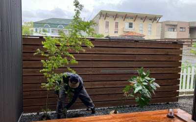 完成形のイメージを描きながら・・外構工事には欠かせない植栽の位置や高さなども同時に把握していきます。