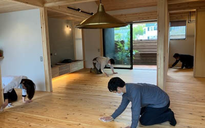 工事の全工程が完了した現場。 お引渡し前の約束事「磨き」をおこないました。